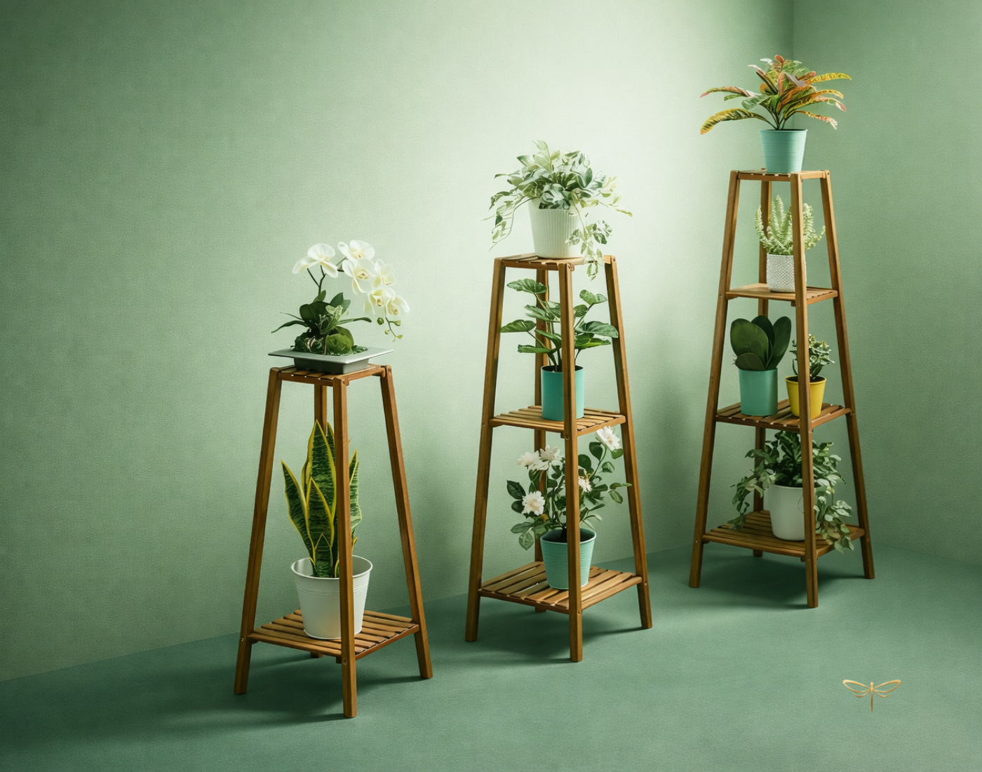 The package includes the bamboo stand, screws, and assembly guide. Please note that plants and pots are not included, allowing you to customise it with your own greenery!