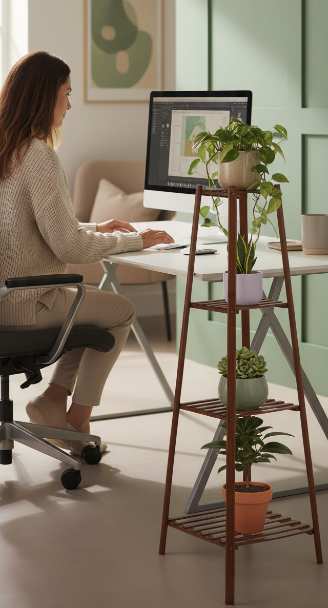 A touch of greenery by your desk lowers stress and makes your routine feel lighter.