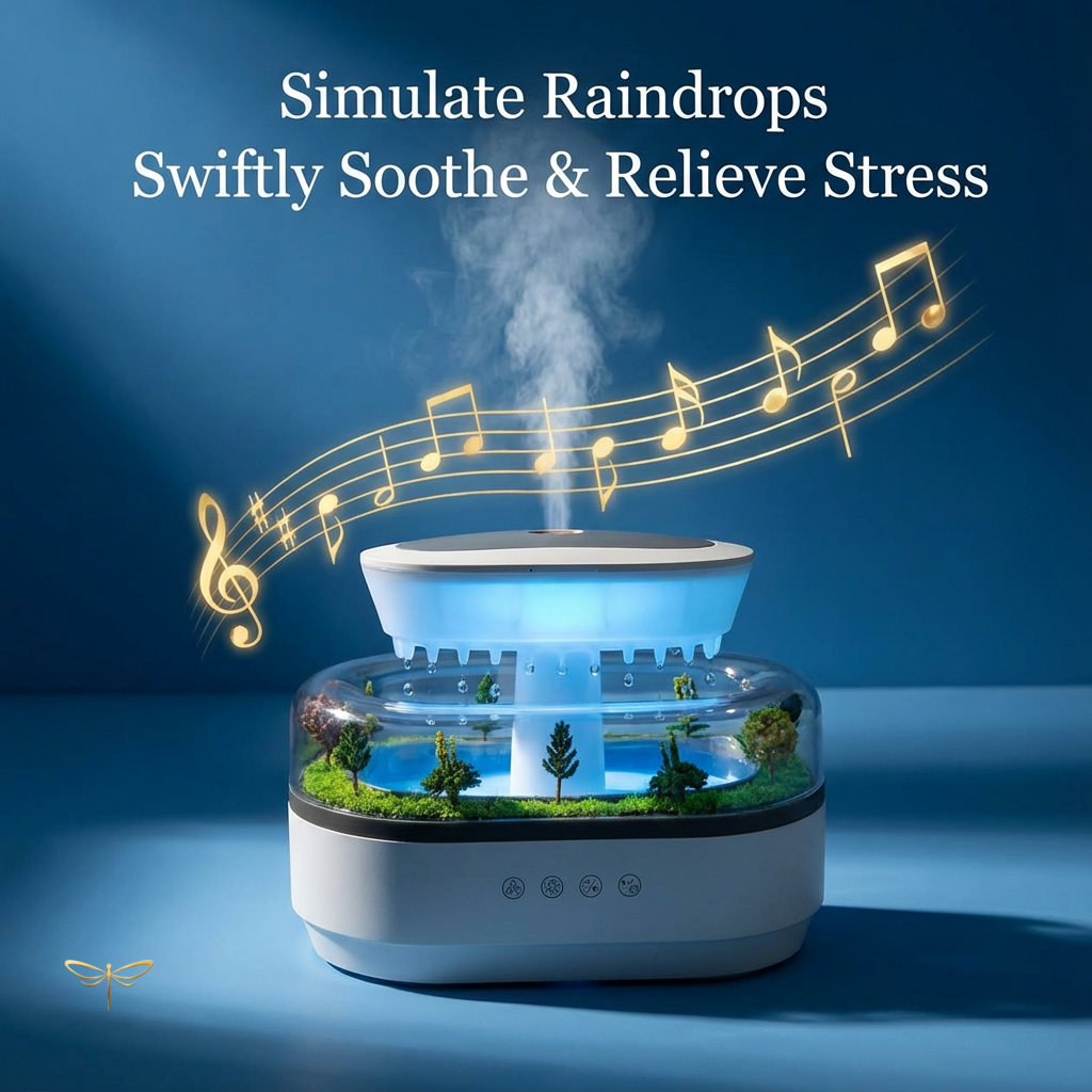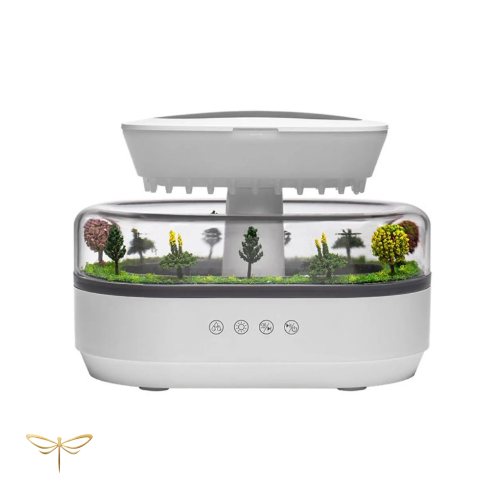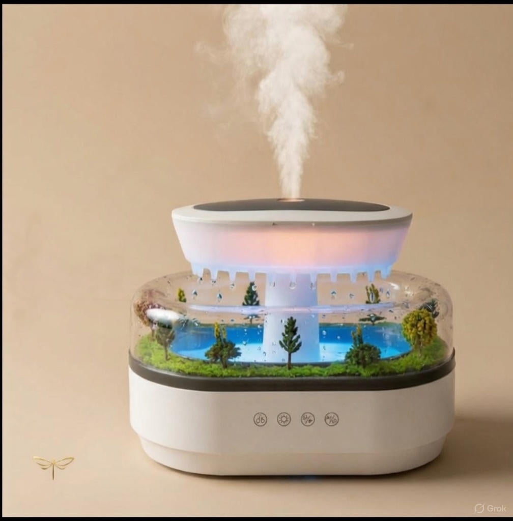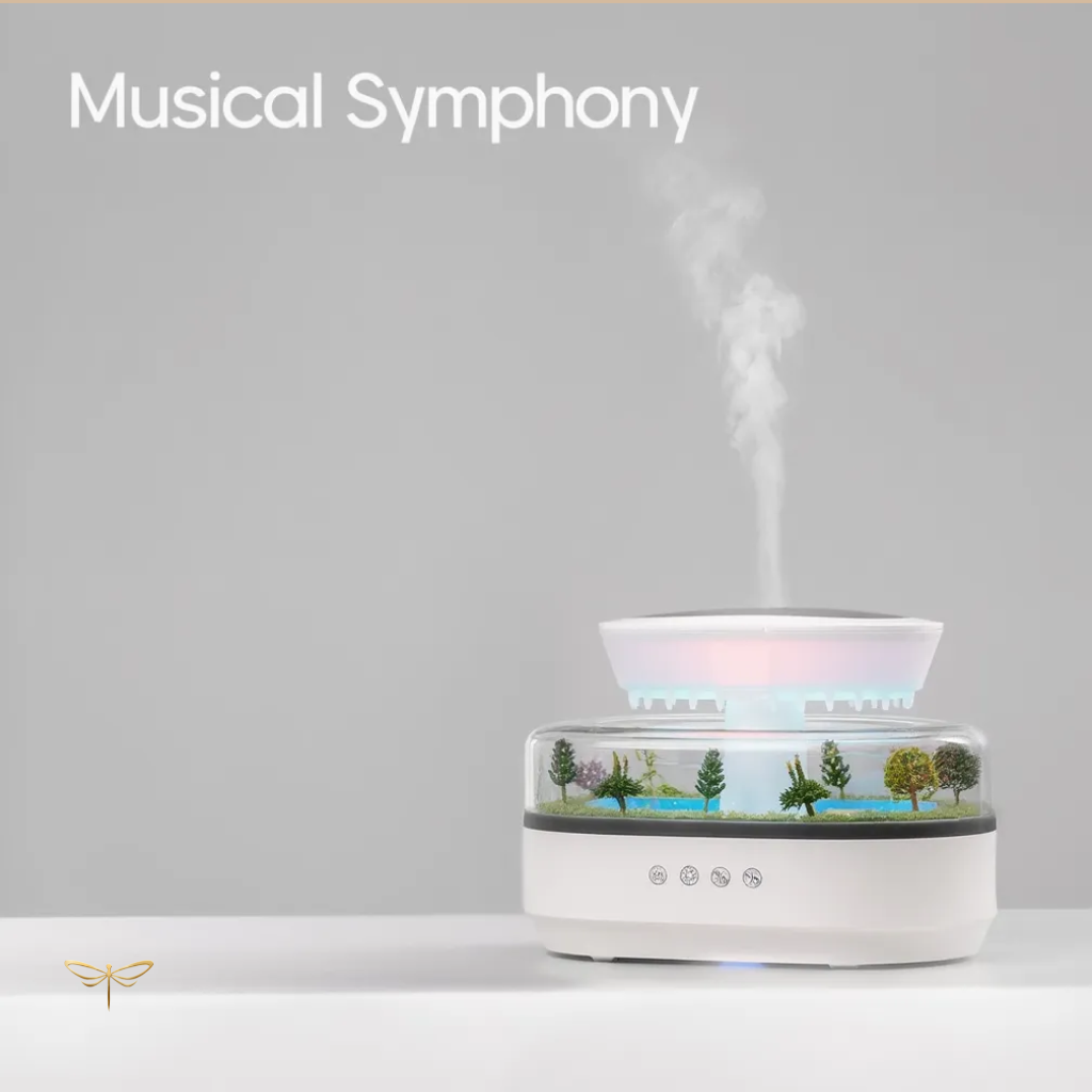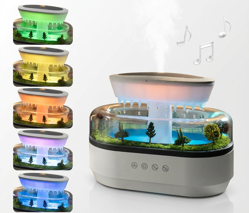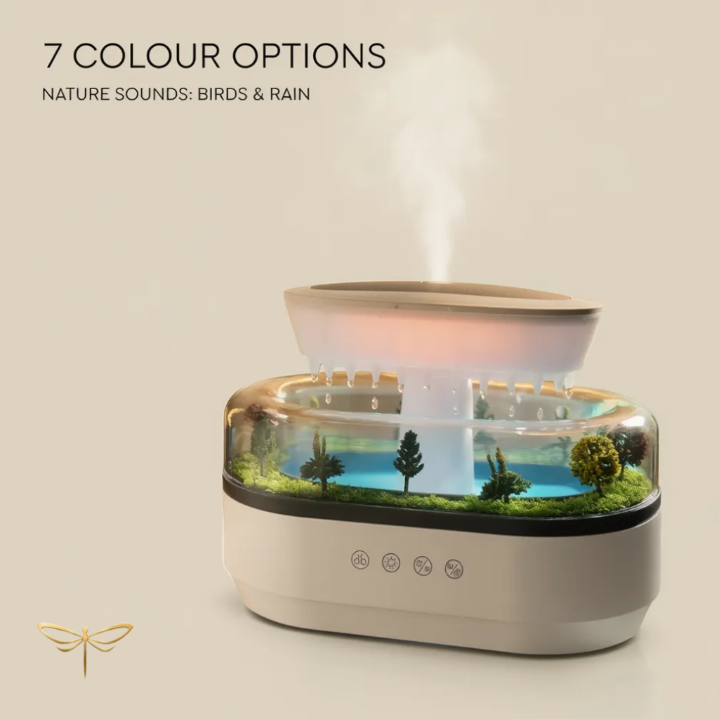 Improve your air quality with a scented mist and the soothing sound of a rainy morning.
